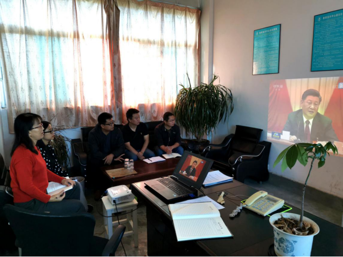 会上全体教师一同观看视频《中国共产党第十九届中央委员会第四次全体会议公报》,并由信息中心党支部支部书记李东同志带领大家集中学习中国共产党第十九届中央委员会第四次全体会议精神要点。